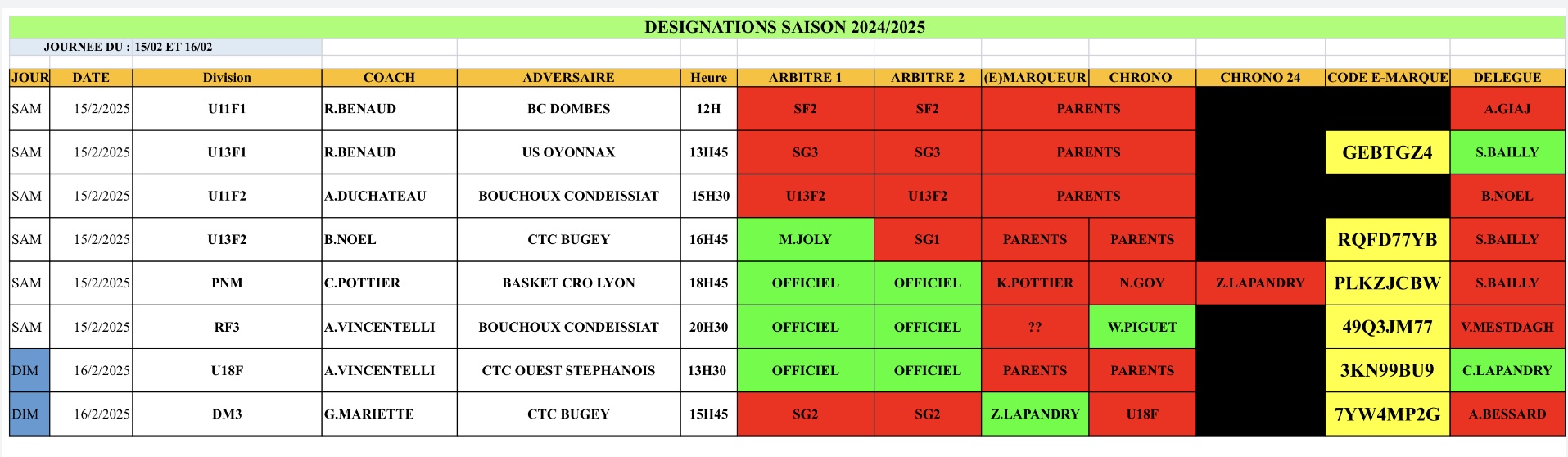 Désignation du week-end