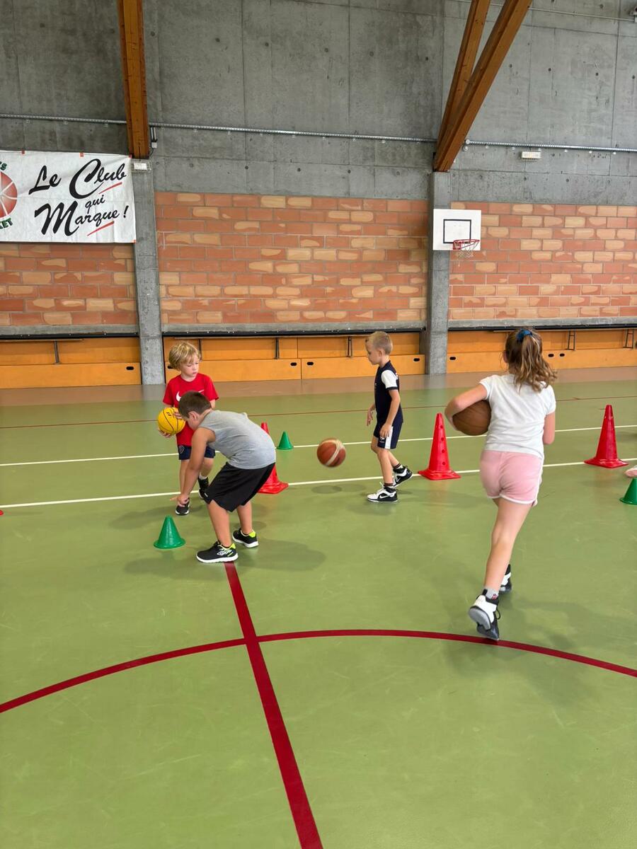 Aujourd'hui, l'entraînement des U7 de Saint Rémy a débuté par un échauffement dynamique suivi d'exercices de dribble, où les jeunes ont alterné entre les mains et pratiqué des changements de direction. Ils ont ensuite travaillé sur des tirs à mi-distance et des lay-ups. Pour finir, une session de jeu libre a permis aux enfants de mettre en pratique leurs compétences dans une ambiance ludique. L'entraînement s'est déroulé dans la bonne humeur, renforçant l'esprit d'équipe parmi les joueurs.